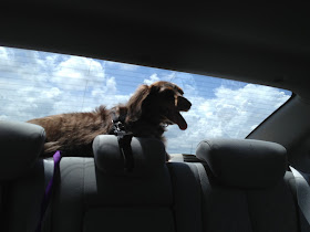 1) When you've got dogs in the car, ALWAYS have the child locks on the windows and doors. We almost lost Mom's dog Cappy on the way to Barkworld. He had broken the tether on his car seat, and he tried to get over my shoulder to the front. He put one of his paws down on the window button in the back seat and was almost sucked onto I-75. Fortunately I was able to grab his leash and pull him over my shoulder. Very scary.